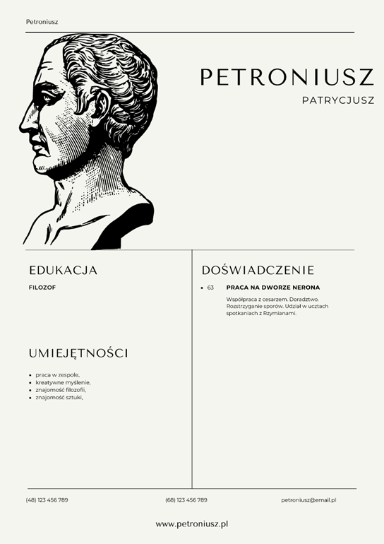W tym ćwiczeniu musisz zredagować CV jednej z wymienionych postaci literackich.