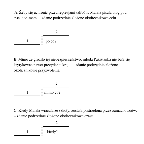Połącz wykresy ze zdaniami. Wskaż typy zdań podrzędnie złożonych.