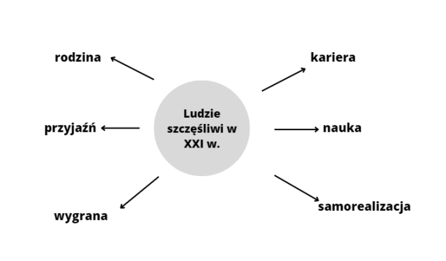 Uzupełnij schemat swymi przemyśleniami na temat tego, co w XXI w. czyni ludzi szczęśliwymi.