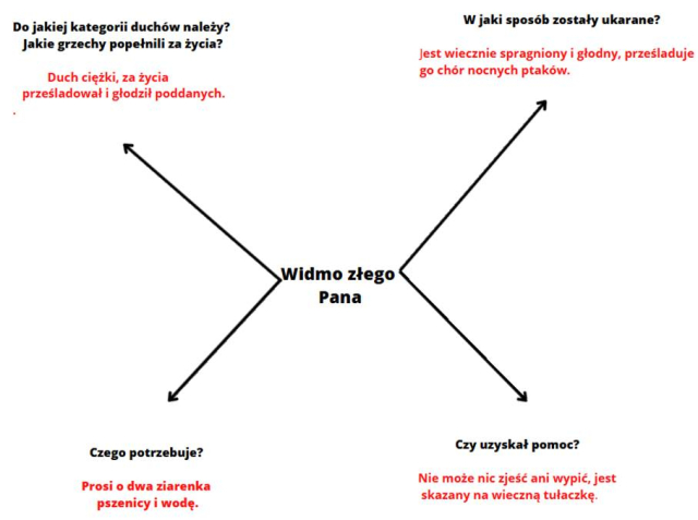 Wskaż, kim są duchy ukazane na ilustracjach i stwórz opis każdego z nich. Wykorzystaj podany schemat.