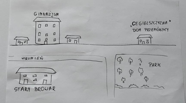 Plan miasta możesz wykonać w formie szkicu Pamiętaj o podpisaniu najważniejszych elementów.