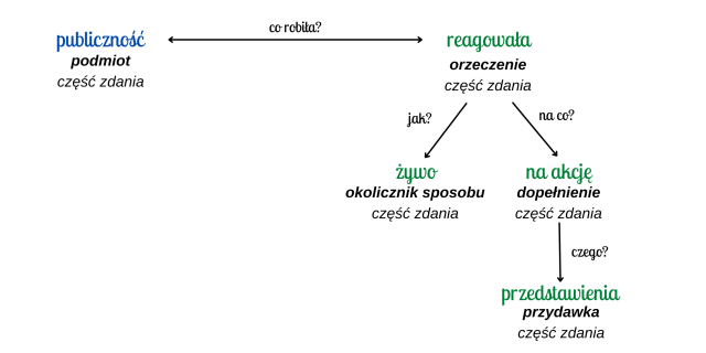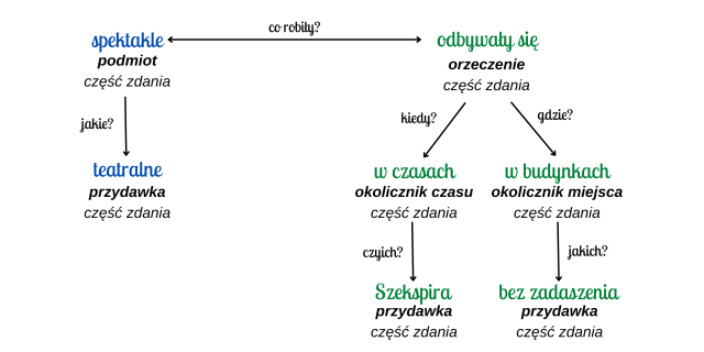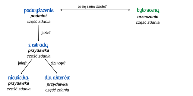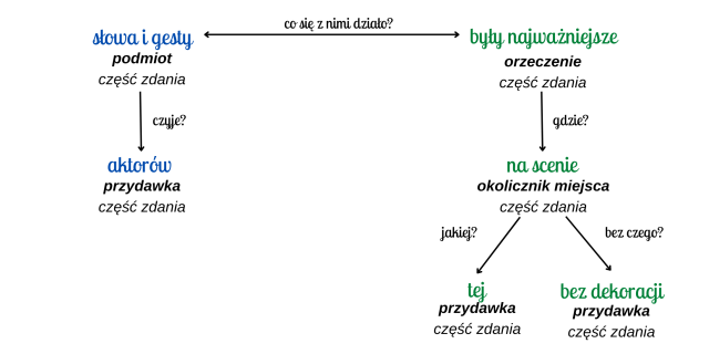 Każde zdanie pojedyncze rozwinięte można zobrazować za pomocą schematu, który składa się z podmiotu oraz orzeczenia, a także pytań pomocniczych odnoszących się do poszczególnych wyrazów tworzących zdanie.