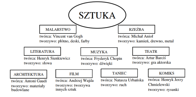 Wpiszcie obok podanych dziedzin sztuki nazwiska twórców. Określcie, z jakim tworzywem – w zależności od dziedziny – pracują.