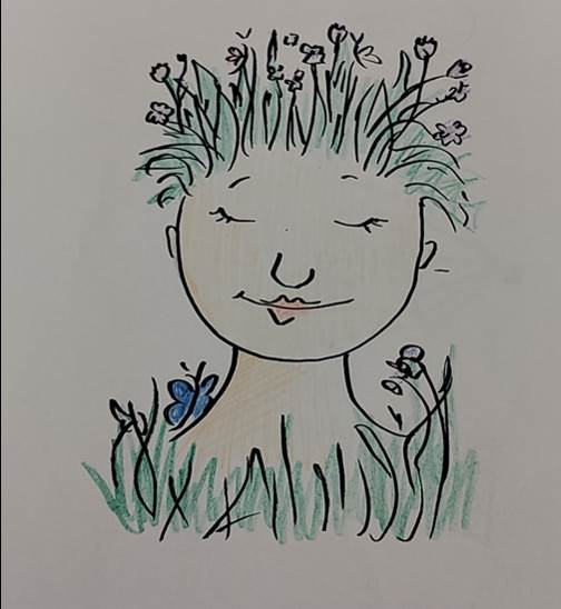 W wierszu Kazimierza Wierzyńskiego wypowiada się poeta. Wyraża szczęście i nadzieję na przyszłość. Poeta, chcąc oddać swój pozytywny nastrój, przywołuje metaforyczny obraz własnej głowy, w której rosną fiołki i barwne klomby. Opisuje również piękną naturę, słońce „bez trosk i zachodu” i własną duszę, która buja w obłokach, jak radosna i beztroska „dusza błękitna”. W drugiej strofie pojawia się obraz osoby mówiącej, która dzieli się swoimi emocjami. Porównuje siebie do wichury zachwytu i do wiosny.