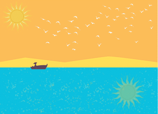 Wykonaj szkic przestrzeni z wiersza. Zaznacz położenie statku oraz zjawiska zaobserwowane przez bohatera.