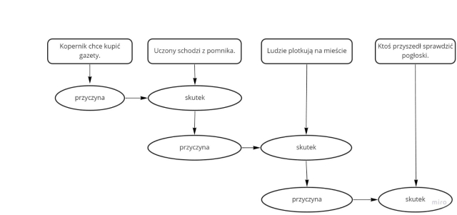 W tym zadaniu musisz stworzyć związki przyczynowo-skutkowe zgodnie ze schematem przedstawionym w zadaniu. Aby to zrobić, skorzystaj z podanych zdarzeń.