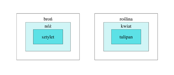 Schemat pokazuje zależność między treścią a zakresem wyrazu.