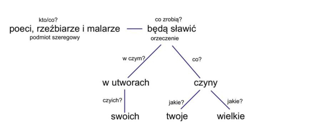 6. Poeci, rzeźbiarze i malarze (podmiot gramatyczny) w swoich utworach będą sławić twoje wielkie czyny.