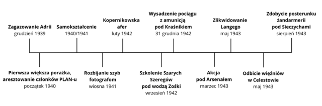 Przygotuj oś czasu na której zapiszesz najistotniejsze wydarzenia związane z działalnością bohaterów w ramach walki z okupantem.