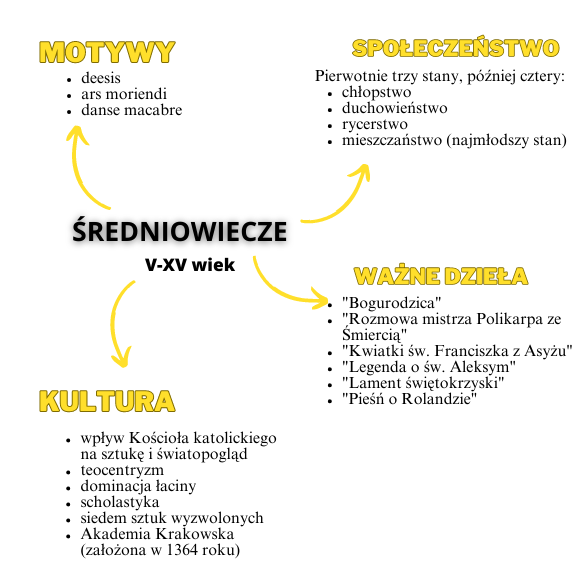 Stwórz mapę myśli przedstawiającą informacje na temat średniowiecza, wykorzystując wiedzę zawartą w podręczniku.