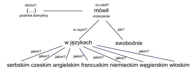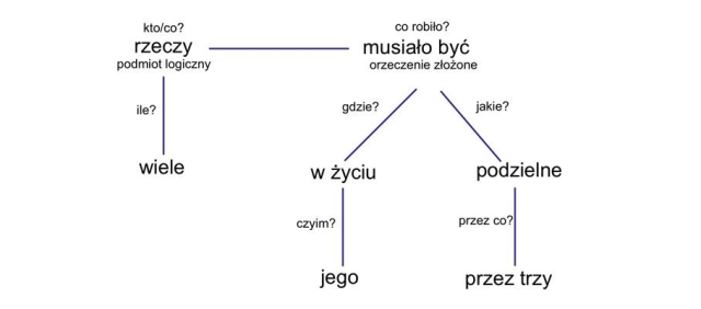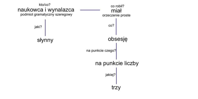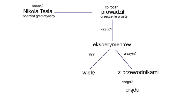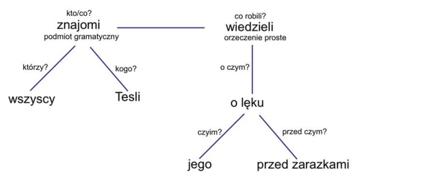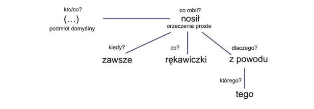 Orzeczenie czasownikowe (proste) składa się z czasownika w formie osobowej. Orzeczenia imienne składają się z łącznika i orzecznika. Definicja to objaśnienie sensu danego wyrazu lub sformułowania. Podmiot gramatyczny to wykonawca czynności wyrażony w mianowniku, podmiot logiczny w dopełniaczu (a czasem celowniku lub nadrzędniku) i najczęściej zdania go zawierające wyrażają brak lub nadmiar czegoś, natomiast domyślny nie jest wyrażony odrębnym słowem, ale domyślamy się go z formy orzeczenia.
