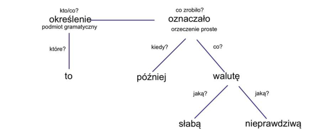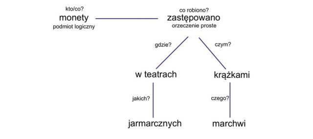 Musisz stwierdzić, które zdanie pasuje do którego wykresu, a następnie określić, które podmioty są gramatyczne, logiczne lub domyślne oraz które orzeczenia są proste, lub złożone.