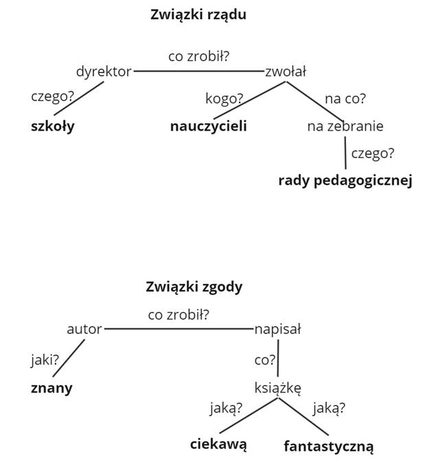 W związku rządu wyraz nadrzędny decyduje o formie gramatycznej wyrazu podrzędnego.