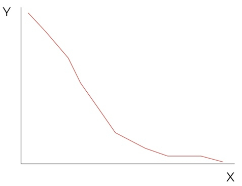 Wykres przedstawia poziom szczęścia pana Piotra – z upływem czasu był coraz bardziej nieszczęśliwy.