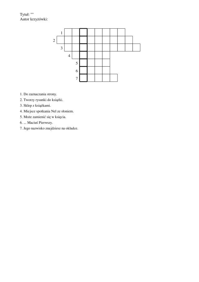 W tym zadaniu musisz w zeszycie ułożyć krzyżówkę z pojęciami związanymi z książką. Postaraj się, aby hasłem krzyżówki było słowo „książka”.