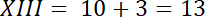 Liczba XIII jest sumą pierwszej liczby (10) i następnych liczb (3).