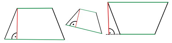 Zaznacz wysokości trapezu na czerwono, a podstawy na zielono.