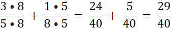 W ostatnim przykładzie wspólnym mianownikiem będzie iloczyn 5 i 8.