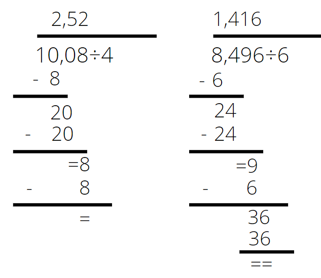 Dzielenie pisemne wykonujemy tak samo, jak w przypadku liczb naturalnych, Jedyna różnica to taka, że w zapisie wyniku przecinek umieszczamy nad przecinkiem. Najpierw wykonaj działanie pisemne tak jak na liczbach naturalnych, po skończeniu wstaw brakujące przecinki.