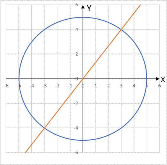 Punkt przecięcia to (–3, –4) oraz (3, 4).