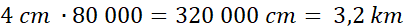 W pierwszym kroku zmierz linijką odległość na mapie pomiędzy przesmykiem jezior a leśniczówką. Następnie oblicz według wzoru.