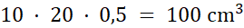 Policz objętość bryły o wymiarach: 10 cm x 20 cm x 0,5 cm.