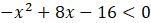 Przekształć lewą stronę nierówności za pomocą wzoru skróconego mnożenia. Narysuj wykres funkcji kwadratowej. Ponieważ wszystkie jego punkty, z wyjątkiem f(4) znajdują się pod osią OX, rozwiązaniem nierówności są wszystkie liczby rzeczywiste poza 4.
