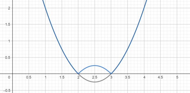 Aby narysować wykres funkcji |f(x)| wszystkie punkty wykresu funkcji f(x), które znajdują się pod osią OX, odbij symetrycznie na drugą stronę osi.