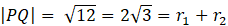 W tym zadaniu musisz określić wzajemne położenie okręgów o środkach w punktach P i Q o promieniach r1 i r2.