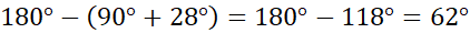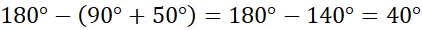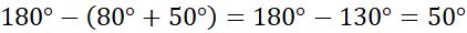 Zauważ, że suma miar kątów w czworokącie wynosi 180 stopni. By obliczyć brakującą miarę kąta, odejmij od 180 stopni sumę kątów trójkąta, które są znane: