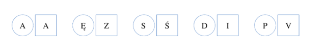 Utwórz różne możliwości wylosowania liter. Pamiętaj, że litery w kółku i w kwadracie nie muszą być różne.