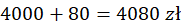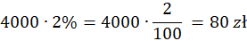Na początku oblicz ile będą wynosiły odsetki po roku trzymania 4000 zł na lokacie. W tym celu oblicz ile wynosi 2% z 4000 zł, mnożąc te dwie wartości (liczbę procentów możesz zapisać w postaci ułamka, tak żeby w mianowniku było 100, a w liczniku liczba procentów). Następnie wynik dodaj do kwoty, którą Jola trzyma na lokacie.