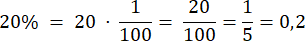 W tym zadaniu musisz zapisać 20% pewnej wielkości jako ułamek dziesiętny oraz ułamek zwykły nieskracalny.