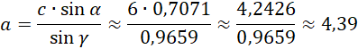 W tym zadaniu należy obliczyć miarę brakującego kąta w trójkącie i obliczyć długość boku a i b.