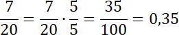 Na podstawie przykładu podanego obok zadania, licznik i mianownik ułamka pomnóż przez taką liczbę, aby w mianowniku znalazła się liczba 100, a następnie uzyskany ułamek zapisz w postaci dziesiętnej.