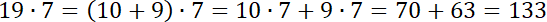 Liczbę 19 rozbij na sumę liczb 10 i 9, a następnie pomnóż każdą liczbę znajdującą się w nawiasie przez liczbę stojącą przy nim i zsumuj uzyskane wyniki.