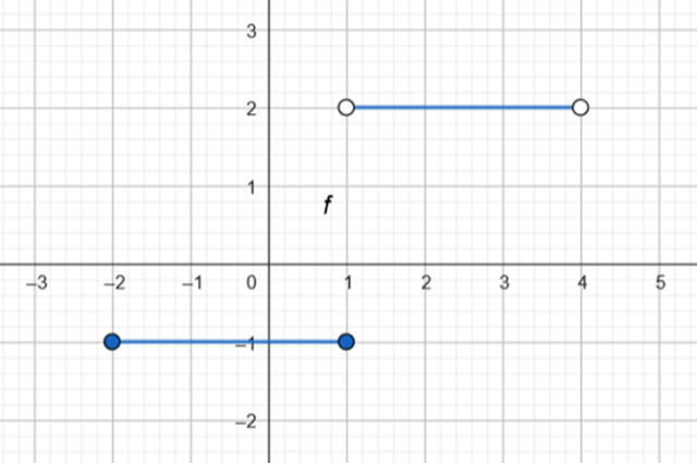 Rysowanie wykresu rozbij na dwa etapy. Najpierw naszkicuj wykres górnej funkcji. Zauważ, że jest on odcinkiem równoległym do osi OX na poziomie