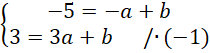 Współrzędne punktów C i D podstaw pod powyższe równanie. Zauważ, że powstanie układ dwóch równań z dwoma niewiadomymi. Całe drugie równanie pomnóż przez -1, aby współczynniki przy