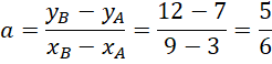 Oblicz wartość współczynnika kierunkowe prostej, do której należą punkty A(3,7) i B(9,12).