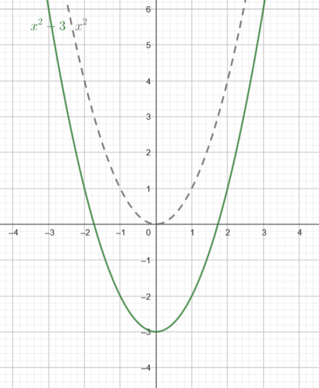 , a następnie przesuń go o 3 jednostki w dół, aby otrzymać wykres funkcji