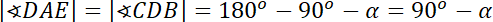 Zauważ, że powstałe trójkąty ADE i DCB są przystające, bo mają boki tej samej długości. Na tej podstawie zapisz miary ich kątów.