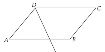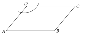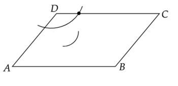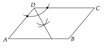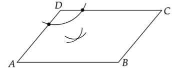 Z wierzchołka kąta D zakreśl cyrklem łuk tak, aby przeciął oba ramiona kąta.