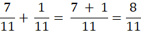 Dodając ułamki o tych samych mianownikach, wykonaj dodawanie liczników tych ułamków. Obliczoną sumę wpisz w miejsce licznika, natomiast mianownik pozostaje bez zmian.