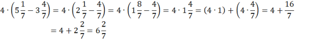 W tym przykładzie rozpocznij od wykonania działania w nawiasie, a dopiero później oblicz iloczyn.