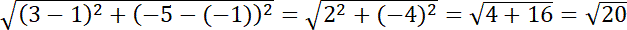 Równanie okręgu ma postać: (x – 1)2 + (y + 1)2 = 20