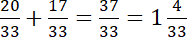 Dodaj podane ułamki do siebie, a następnie wyłącz całości z ułamka.