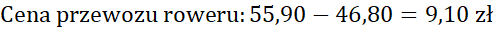 Ile kosztuje przewóz roweru, jeśli Marcin przewoził go na trasie 160 km i zapłacił 55,90 zł.
