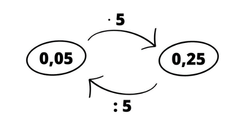 Podziel wynik po prawej stronie przez 5. Otrzymany wynik, który musisz wpisać po lewej stronie to 0,05. Sprawdź, czy po pomnożeniu przez 5 otrzymasz wynik po prawej stronie.