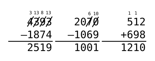 W tym zadaniu musisz wykonać działania 4393 – 1874, 2070 – 1069, 512 + 698 sposobem pisemnym.
