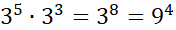 . Jeśli mnożymy przez siebie dwie takie same liczby o różnych wykładnikach, to wykładniki te dodajemy, na przykład: 23 ∙ 25 = 23 + 5 = 28. Jeśli zaś mnożymy przez siebie dwie różne liczby o tych samych wykładnikach, to wykonujemy mnożenie tych liczb, a wykładnik przepisujemy: 23 ∙ 53 = (2 ∙ 5)3 = 103.